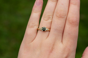 Vesta Ring - 9ct Yellow Gold with Blue-Green Sapphire